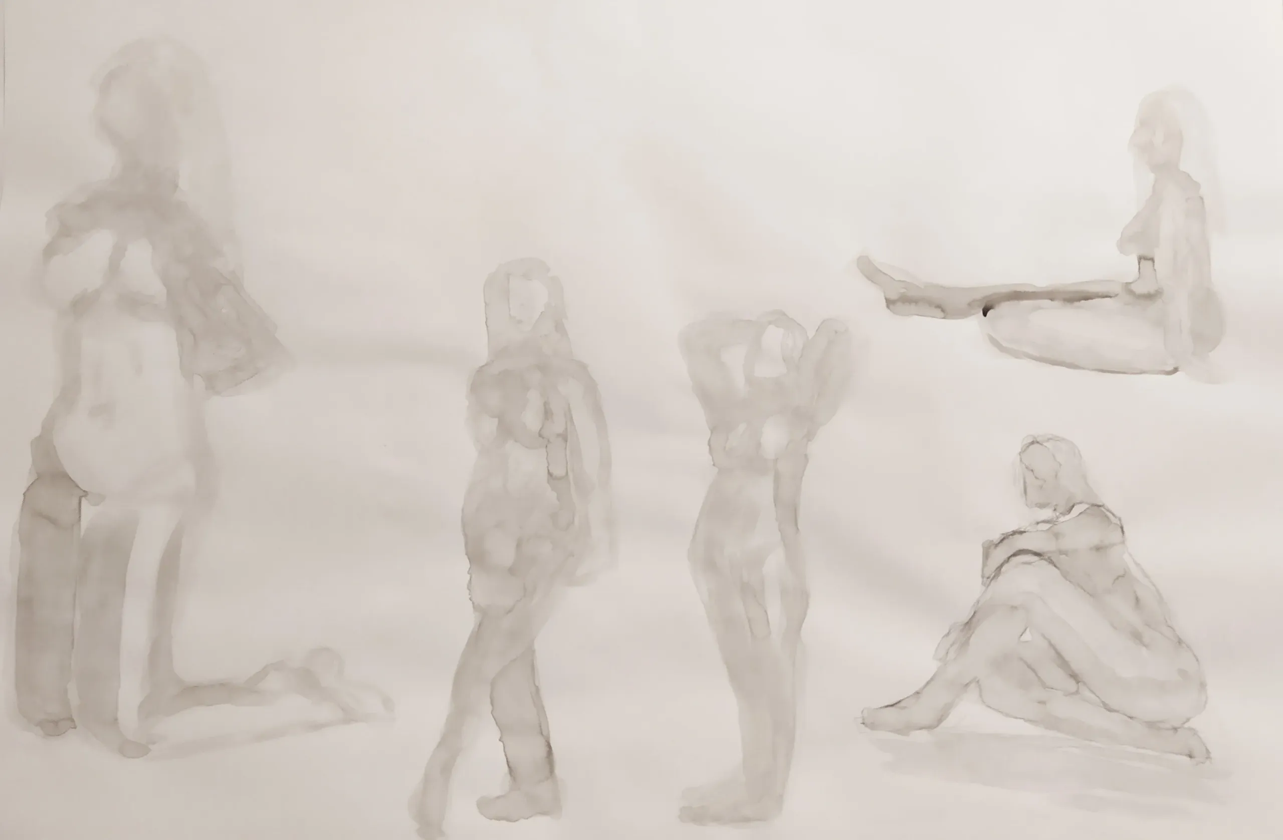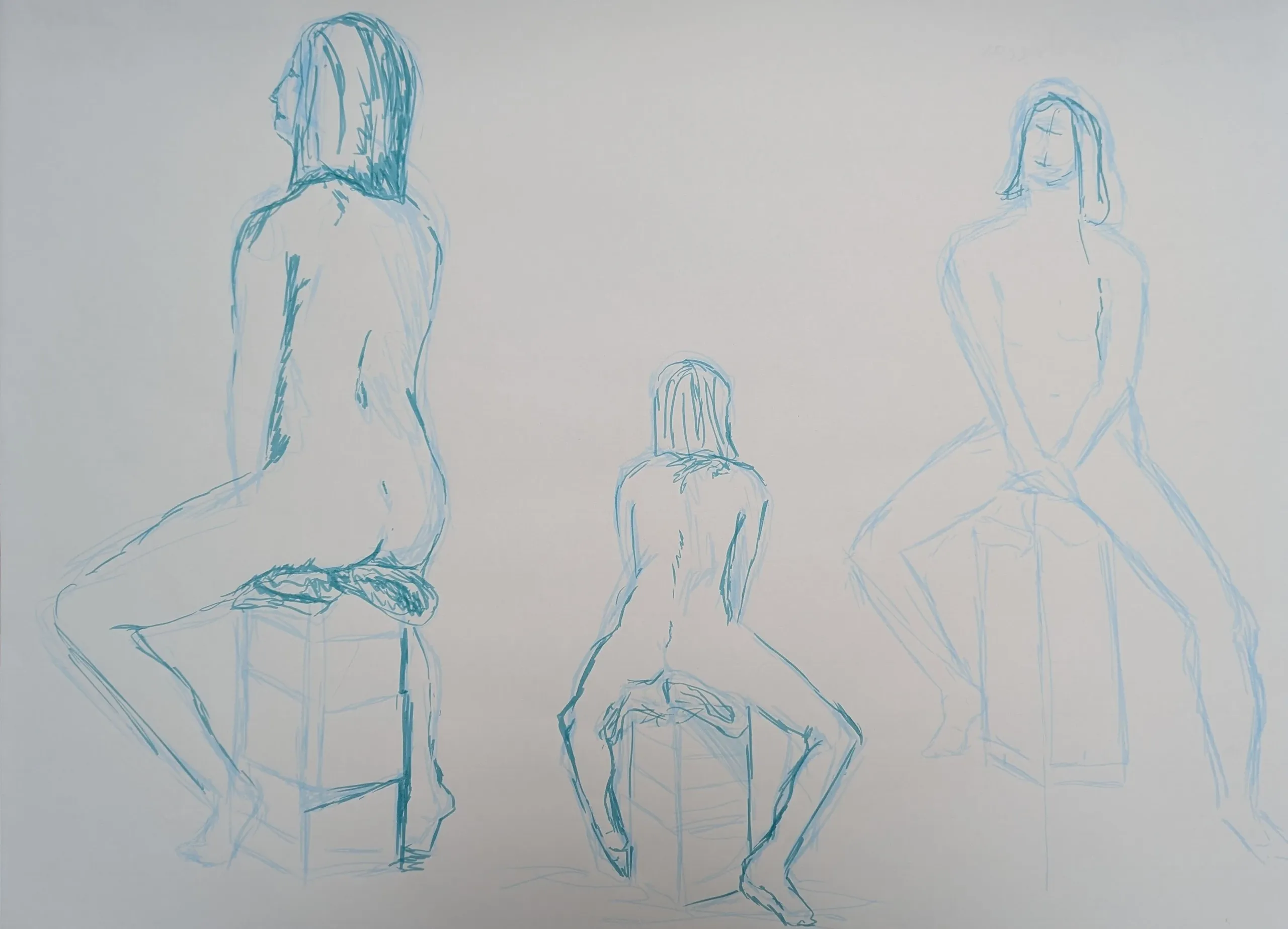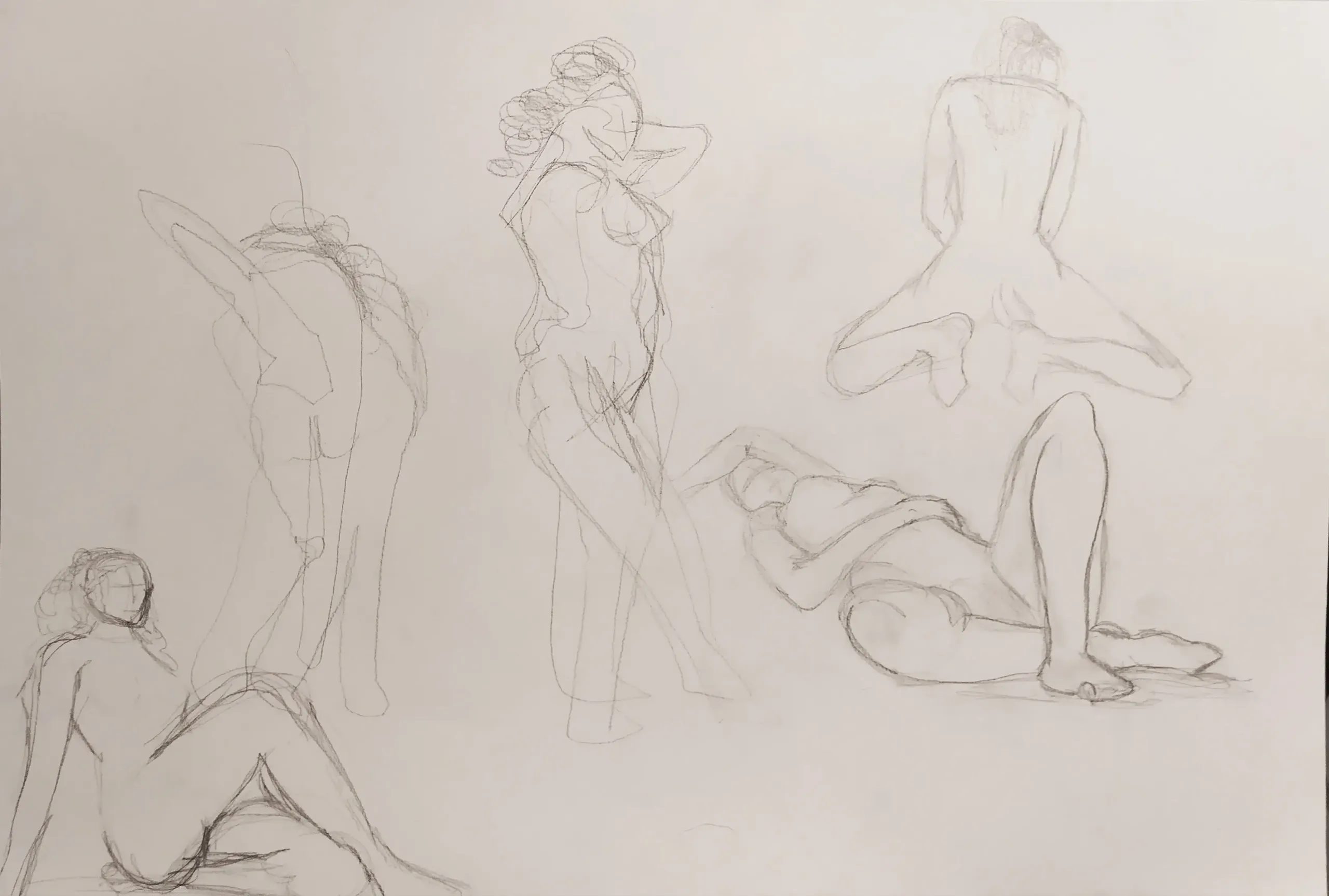 Durant ma classe préparatoire et première année à l'ESAD j'ai eu l'occasion de découvrir la pratique du dessin d'après modèle, dans des pauses variant de 5 à 10min.