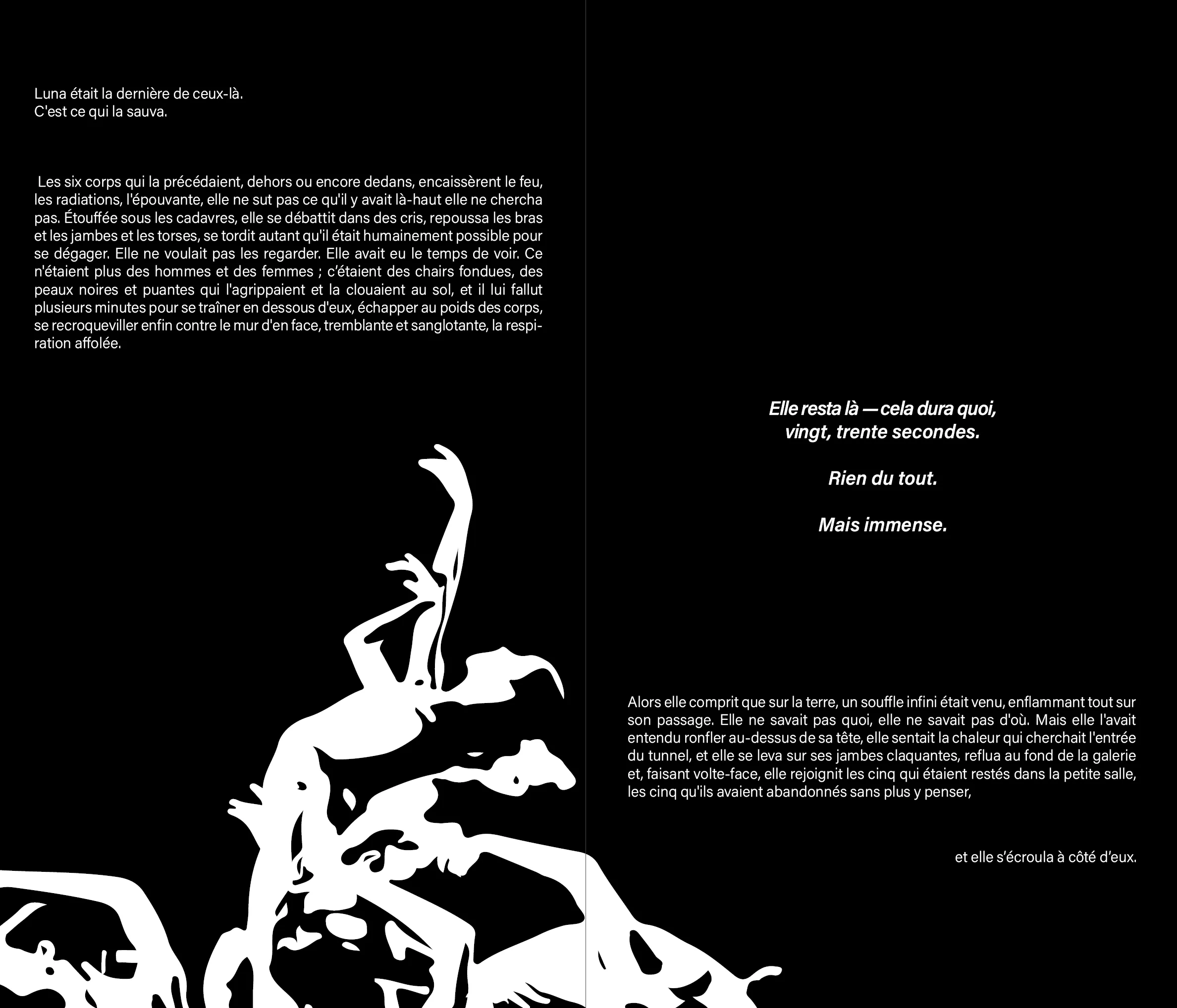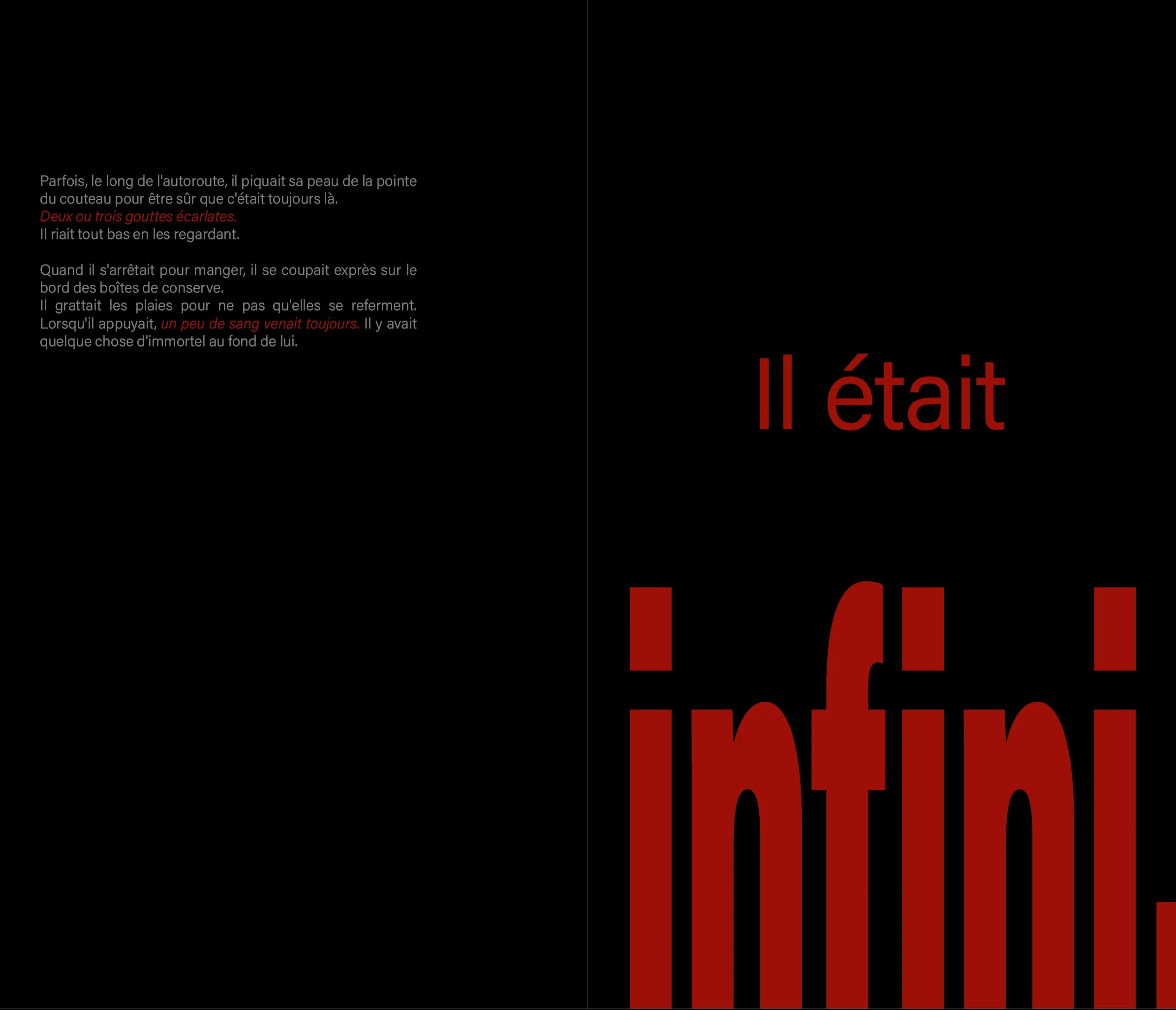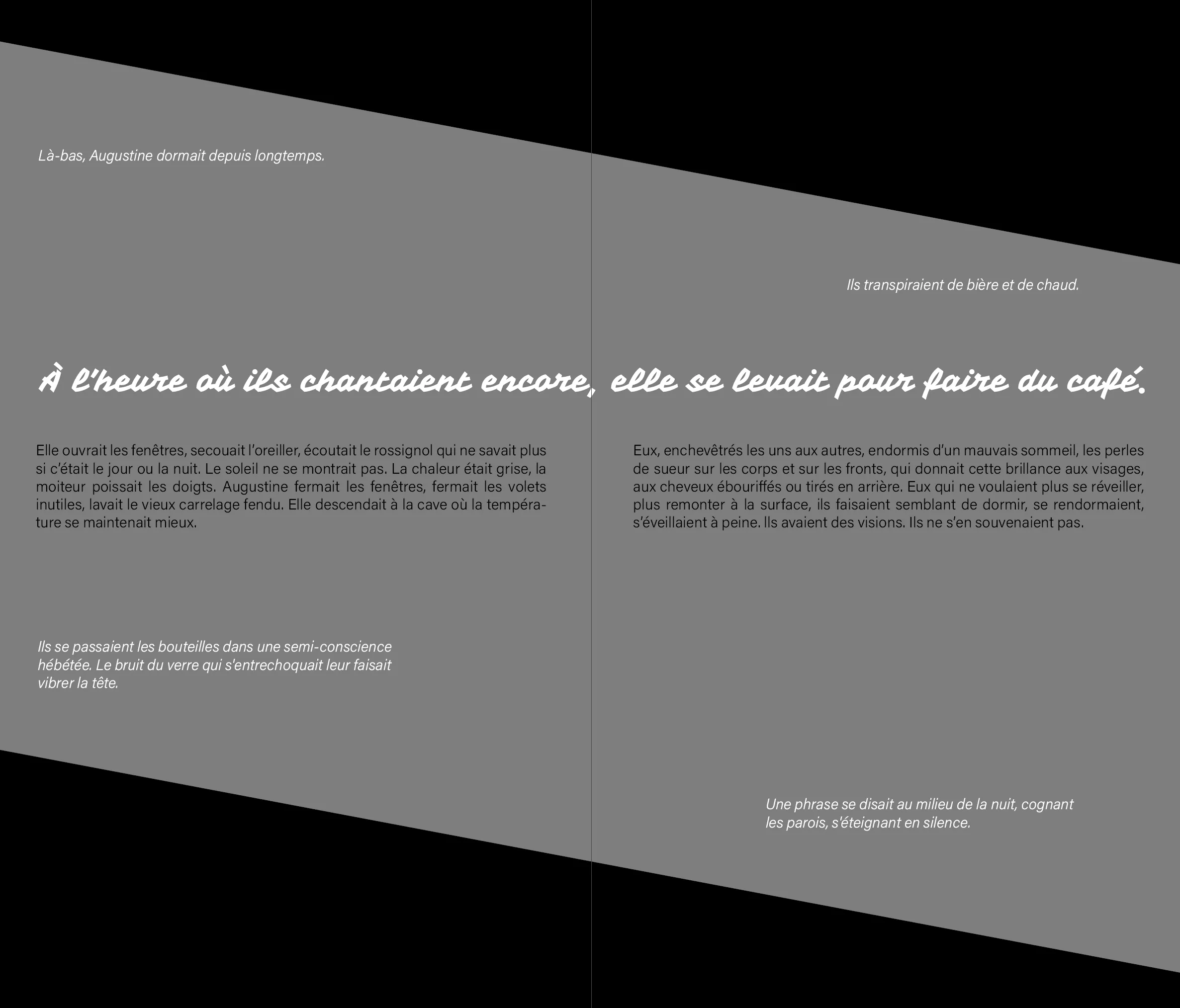 Travail sur un coffret d’artiste, j’ai choisi l’écrivaine Sandrine Collette. J’ai retravaillé certaines des couvertures de l’artiste pour faire ressortir une unité graphique et donner un attrait au livre. Le coffret est également composé de deux éditions, une reprenant l’histoire de son livre «Et toujours les forêts», et une autre servant de bio et bibliographie de l’autriceDimensions couvertures : 11×18cm pour la 1re et 4eDimensions éditions : 14×24cm | 180 pages Et toujours les Forêts