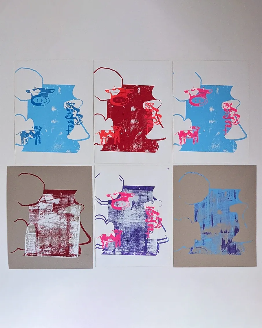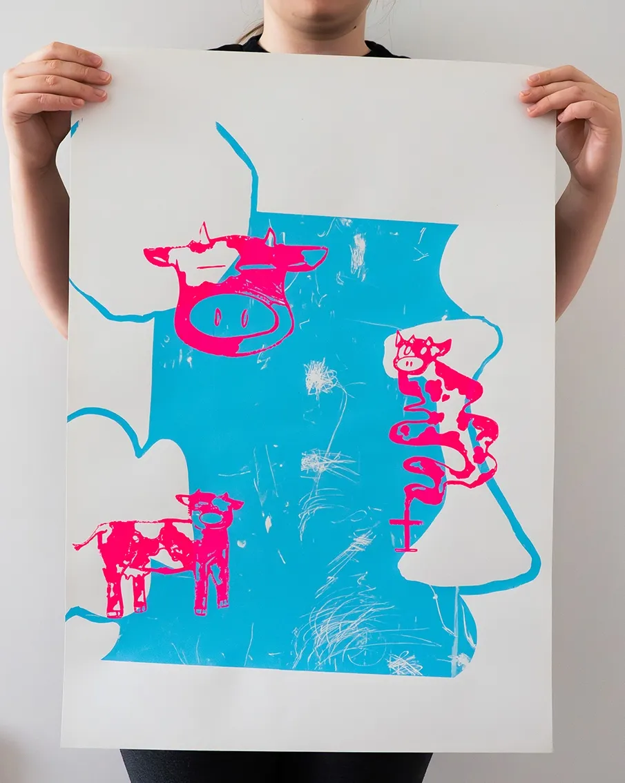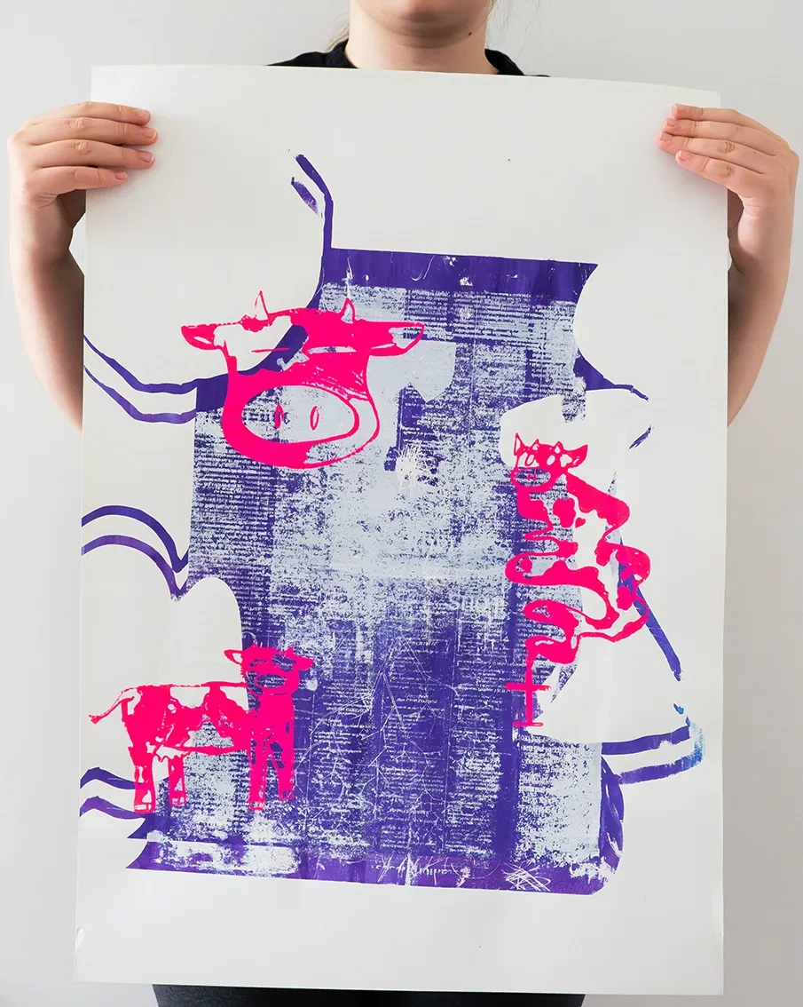 Charlotte Marguerite Celestine Travail en trinôme de sérigraphie. Superpositions, jeux de couleur et dégradés. Format raisin cartonné ou sur feuilleD’autres ont été redécoupés au format carte postale.Dimensions affiches : 45×64cm